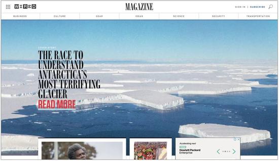 《连线》的网站界面十分简洁,版面的大小根据内容重要程度呈现,你可以很快获取你想要的信息。图片来源 | Wired